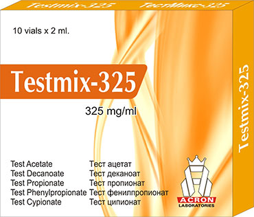 Testmix-325 is an injectable anabolic steroid blend comprising five testosterone esters: